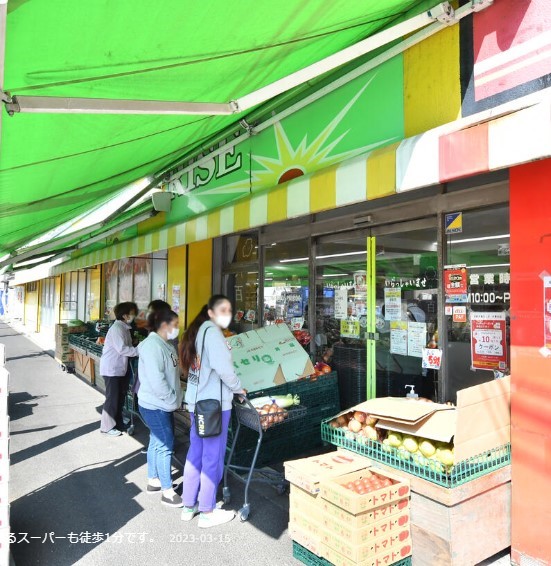 歩いて1分のところに「OKストア川口中青木店」が開店しました。また、新鮮市場、BIG-Aが至近距離にあります。徒歩圏内にはガスト、バーミヤンがあります。